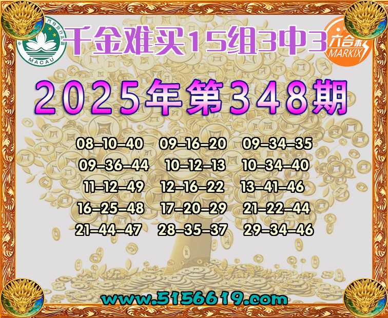 348期:【千金难买】 🍟15组3中3🍟