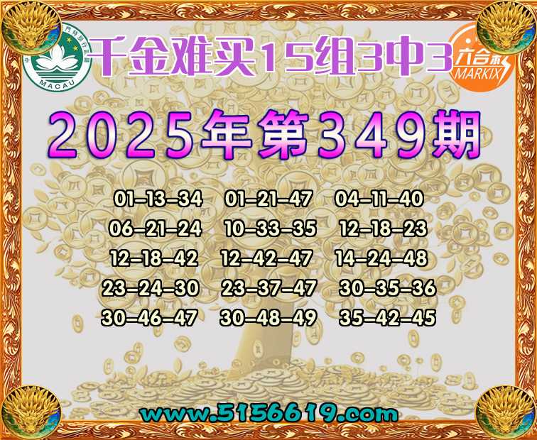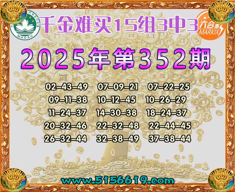 349期:【千金难买】 🍟15组3中3🍟
