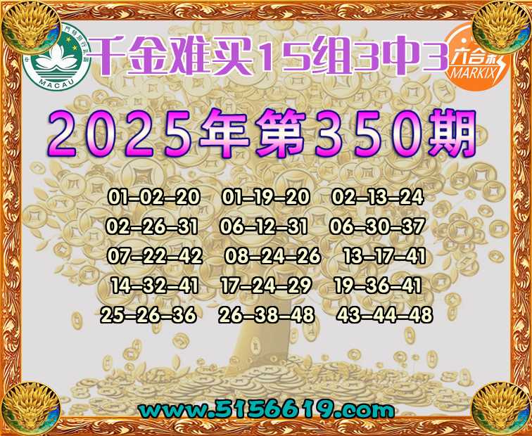 350期:【千金难买】 🍟15组3中3🍟