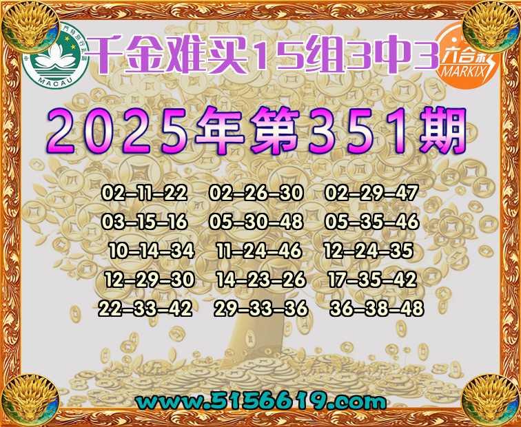 351期:【千金难买】 🍟15组3中3🍟