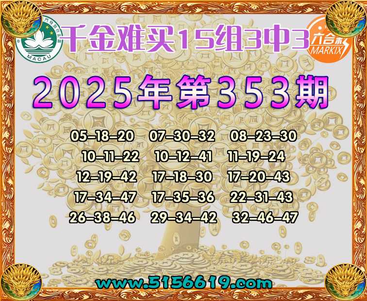 353期:【千金难买】 🍟15组3中3🍟