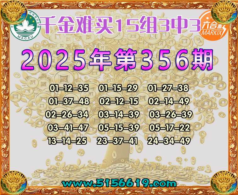 356期:【千金难买】 🍟15组3中3🍟