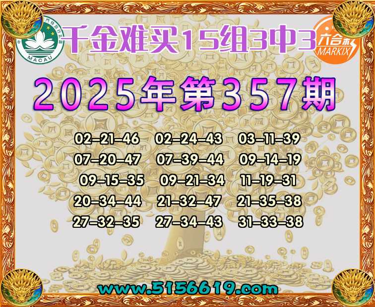 357期:【千金难买】 🍟15组3中3🍟