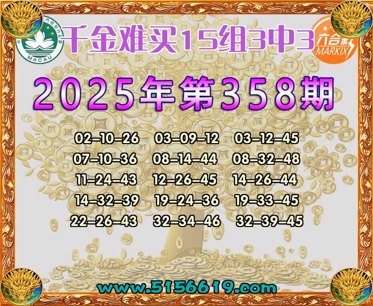 358期:【千金难买】 🍟15组3中3🍟