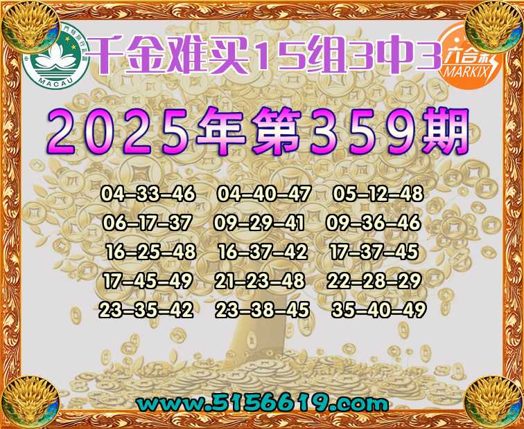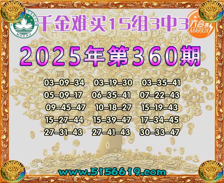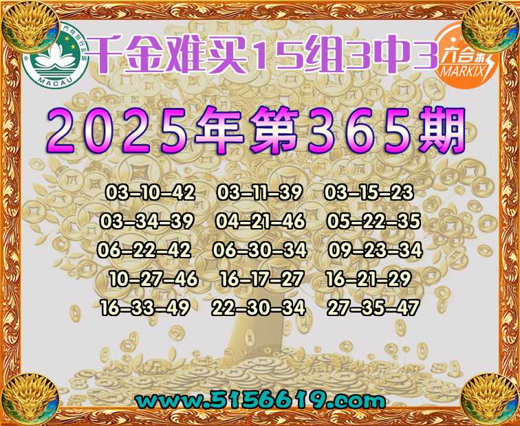 365期:【千金难买】 🍟15组3中3🍟