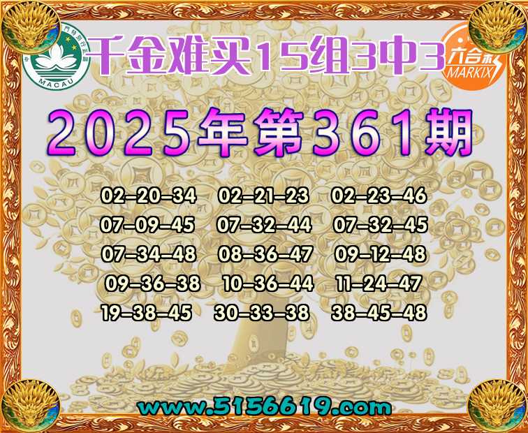 361期:【千金难买】 🍟15组3中3🍟