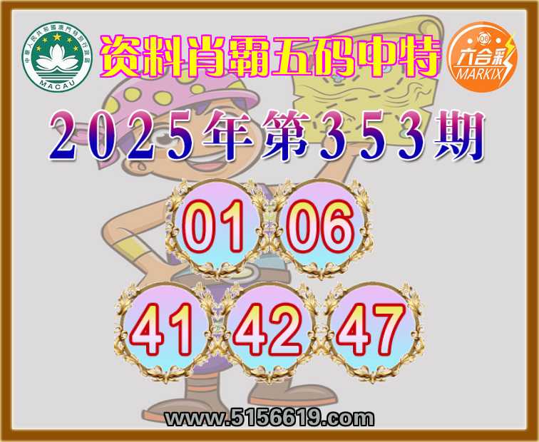 353期:【资料肖霸】  ♣️五码中特 ♣️【01.06.41.42.47】开:01