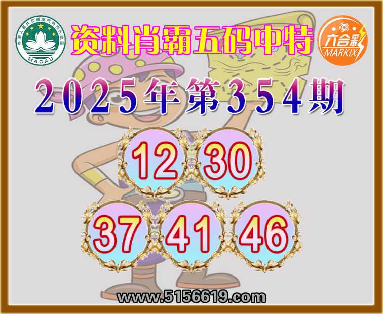 354期:【资料肖霸】  ♣️五码中特 ♣️【12.30.37.41.46】开:30