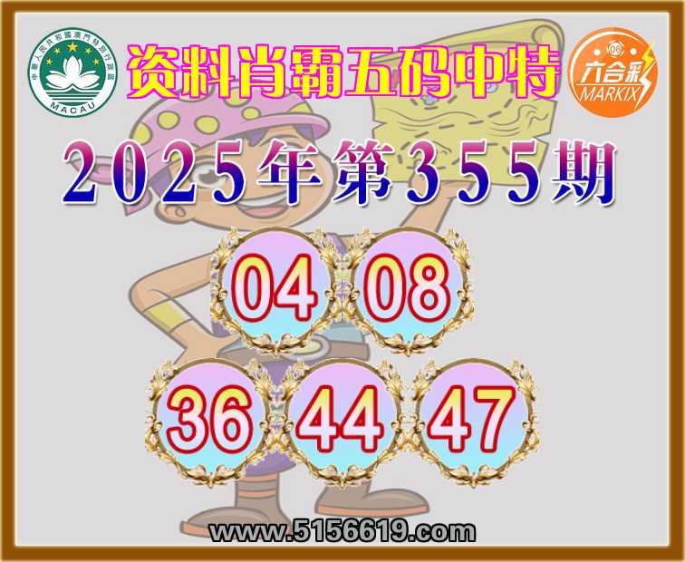 355期:【资料肖霸】  ♣️五码中特 ♣️【04.08.36.44.47】开:08