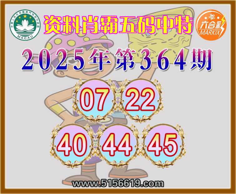 364期:【资料肖霸】  ♣️五码中特 ♣️【07.22.40.44.45】开:12